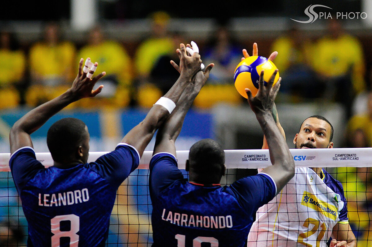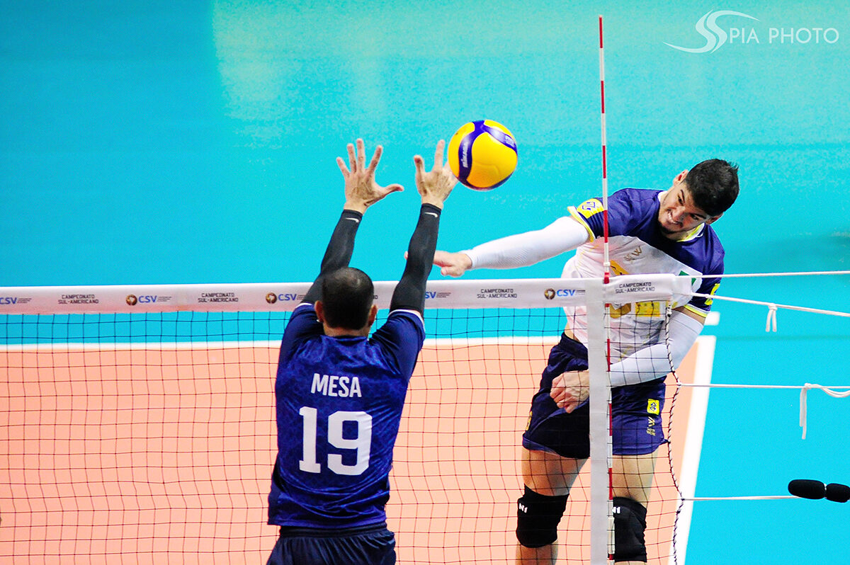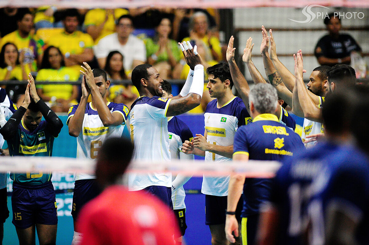 Jogo entre Brasil X Colômbia, pela terceira rodada do Campeonato Sul-Americano de Voleibol Masculino 2023, no Ginásio Geraldão, em Recife/PE, Brasil.