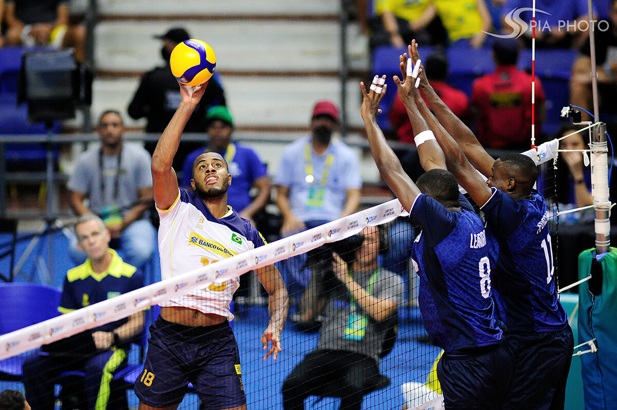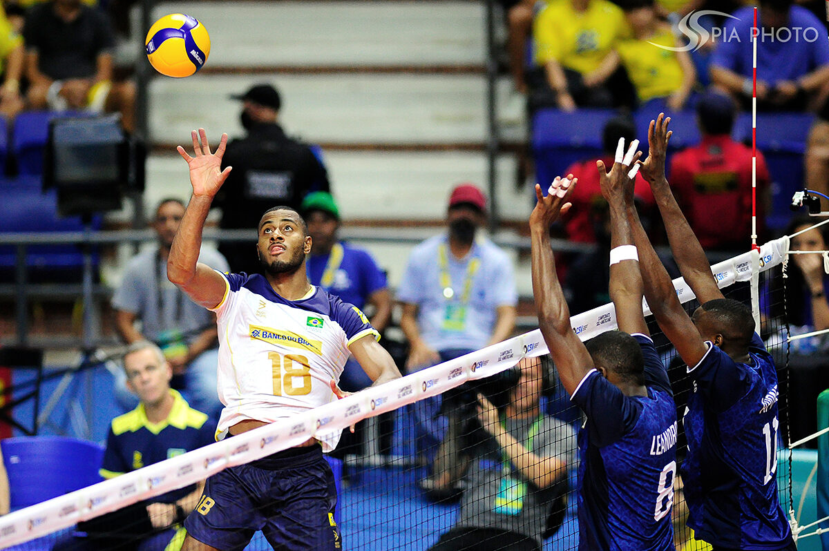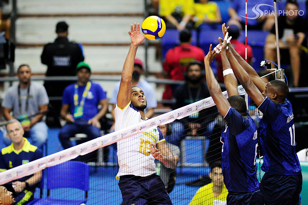 Jogo entre Brasil X Peru, pela primeira rodada do Campeonato Sul-Americano de Voleibol Masculino 2023, no Ginásio Geraldão, em Recife/PE, Brasil.