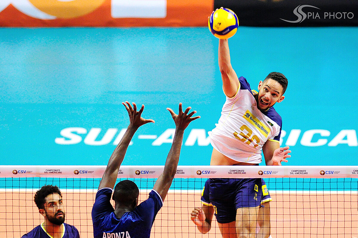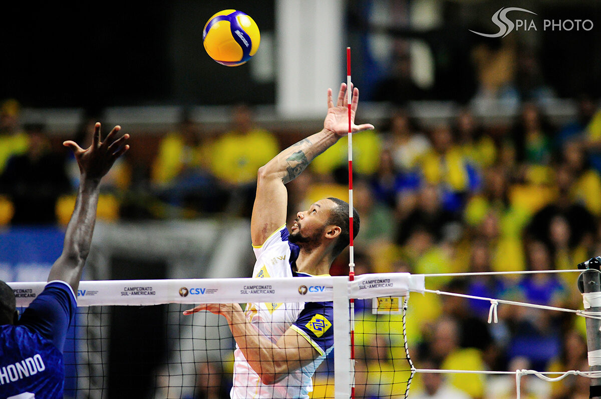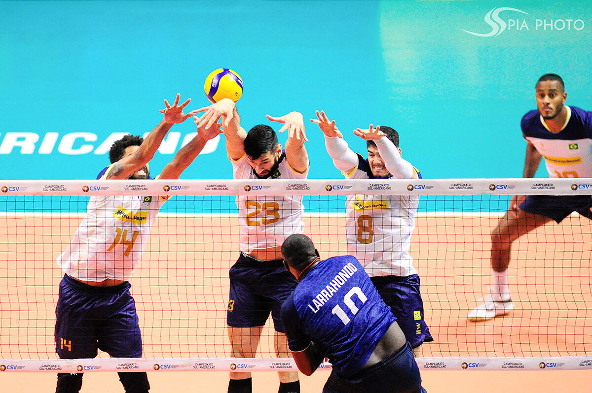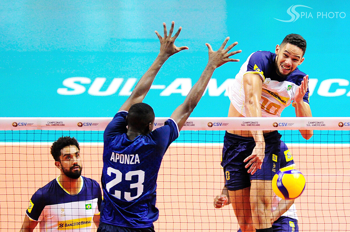 Jogo entre Brasil X Peru, pela primeira rodada do Campeonato Sul-Americano de Voleibol Masculino 2023, no Ginásio Geraldão, em Recife/PE, Brasil.